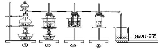 (1)制取氯气时,通过分液漏斗向盛有二氧化锰固体的烧瓶中加入适量的浓盐酸。实验时为了除去氯气中的氯化氢气体,可在①与②之间安装 (填写化学试剂和装置名称);
