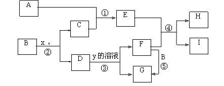 19.(11分)下图为中学化学中几种常见物质的转化关系(部分产物已略去)。已知:A、C是气体单质,B为金属;气体E极易溶于水、液态常做致冷剂。D为黑色固体,H的固体受热分解生成两种气体E和y,y的组成元素均为短周期元素。