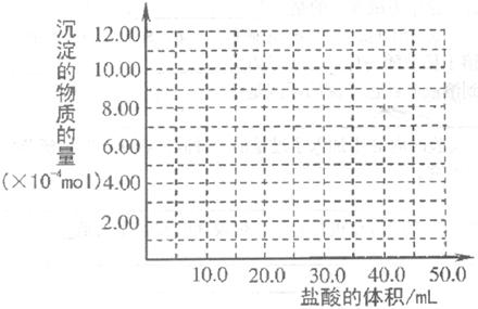 (2)将Al2O3与过量NaOH溶液充分反应,其反应的离子方程式为:______________ ____________________________。取上述充分反应后的溶液10.0mL,经分析,该溶液中只含有两种等物质的量浓度的碱性溶质,向其中逐滴加入0.100mol·L-1盐酸溶液,当加入50.0rnL盐酸溶液时,生成的沉淀恰好溶解。请画出生成沉淀的物质的量与加入盐酸体积的关系图。