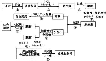 18.(12分)茶是我国人民喜爱的饮品。某校化学兴趣小组的同学设计如图所示实验来定性检验茶叶中含有Ca、Al、Fe三种元素。