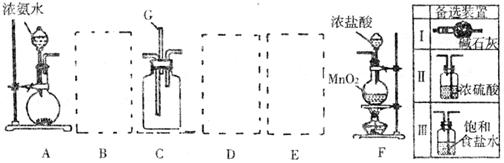 21.(13分)某课外活动小组利用以下装置探究氯气与氨气之间的反应。其中A、F分别为氨气和氯气的发生装置,C为纯净的氯气与氨气反应的装置。