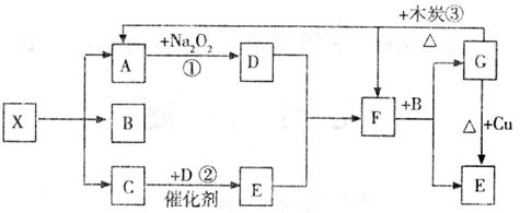 22.(8分)下图中的每一个方格表示有关的一种反应物或生成物。已知X为一种盐,其分解产物中A、B、C的物质的量之比为1︰1︰1,A为无色无味气体。试完成下列问题:
