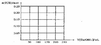 (2)如果上述明矾溶液中滴加1mol/L的Ba(OH)2溶液,请在下图中画出反应体系中产生的两种沉淀的总物质的量随Ba(OH)2溶液体积V的变化曲线。当溶液中沉淀的总物质的量最大时,沉淀的质量是 g,体系中能出现的沉淀的最大质量是 g。