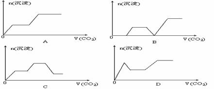 18、将足量的CO2不断通入KOH、Ba(OH)2、KAlO2的混合液中,生成沉淀与通入CO2的量的关系可表示为 ( )