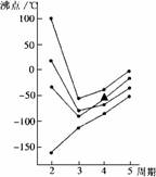 5.下图中每条折线表示周期表ⅣA-ⅦA中的某一族元素氢化物的沸点变化(外压为1atm),其中▲代表的是 ( )