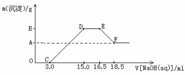 29.硝酸跟金属反应时,随着硝酸的浓度下降和金属活动性的增大,产物中氮元素的化合价会逐渐下降,它们可能是NO2、NO、N2O、N2或NH4+中的一种或几种。现有一定量铁粉和铝粉组成的混合物跟100ml稀硝酸充分反应,反应过程中无任何气体放出,在反应结束后的澄清溶液中,逐渐加入4.00mol/L的氢氧化钠溶液,加入氢氧化钠溶液的体积与产生沉淀的质量如下图所示:
