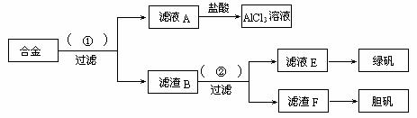 21.(10分)某化学兴趣小组为探索工业废料的再利用,在实验室中用含有铝、铁、铜的合金制取氯化铝溶液、绿矾晶体(FeSO4·7H2O)和胆矾晶体。其实验方案如下: