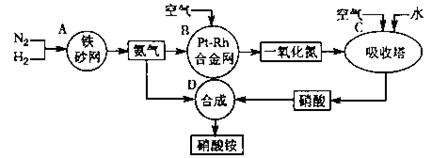 22.(14分)下图是工业生产硝酸铵的流程。