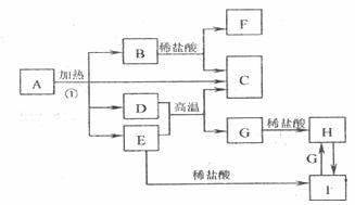 已知:A中含二种阴离子和一种带二个单位负电荷的阴离子,三种离子的个数比为3:1:3。阴离子中各元素的质量分数与C相同且式量是C的2倍。C、D都为气体且含有元素种类相同,C能使澄清石灰水变浑浊,E是一种红棕色的颜料,F的焰色反应呈紫色,1能使苯酚溶液显紫色。