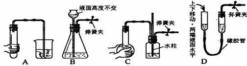 7.下列各图所示装置的气密性检查中,一定漏气的是