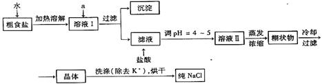 (1)粗食盐常含少量K+、Ca2+、Mg2+、Fe3+、SO42-等杂质离子,实验室提纯NaCl流程如下: