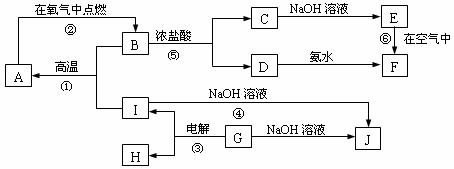 22.(14分)A-I分别表示中学化学中常见的一种物质,其中A、I为常见金属,它们之间相互关系如下图所示(部分反应物、生成物没有列出),且已知G为主族元素的固态氧化物,A、B、C、D、E、F六种物质中均含同一种元素。请填写下列空白: