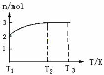 25.(4分)一定温度下,将1molN2O4置于密闭容器中,保持压强不变,升高温度至T1的过程中,气体由无色逐渐变为红棕色,温度继续由T1升高到T2的过程中,气体逐渐变为无色。若保持T2,增大压强,气体逐渐变为红棕色。气体的物质的量n随温度T变化如图所示。