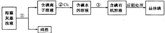 9.海藻中含有丰富的、以离子形式存在的碘元素。下图是实验室从海藻里提取碘的流程的一部分。