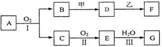 21.(8分)物质的转化关系如下图所示(有的反应可能在水溶液中进行)。其中A为化合物,甲可由两种单质直接化合得到,乙为金属单质,G为酸,乙在G的浓溶液中发生钝化。