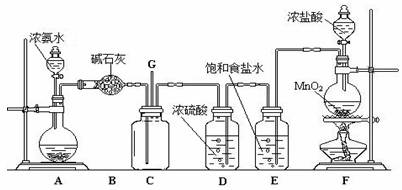 24.某学生利用以下装置探究氯气与氨气之间的反应。其中A,F分别为氨气和氯气的发生装置,C为纯净干燥的氯气与氨气反应的装置。