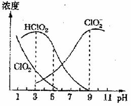 21.印染工业常用亚氯酸钠(NaClO2)漂白织物,亚氯酸钠在溶液中可生成ClO2、HClO2、ClO2-,其中HClO2是漂白剂的有效成分,ClO2是有毒气体。各组分含量随pH变化情况如图所示,由图知,使用该漂白剂的最佳pH为 ( )