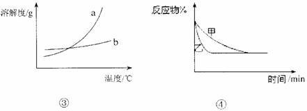 C.图③表示物质a、b的溶解度曲线,可以用结晶方法从a、b混合物中提纯a