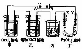 11.如下图所示的装置,C、D、E、F、X、Y都是惰性电极。将电源接通后,向乙中滴入酚酞试液,在F极附近显红色。则以下说法不正确的是 ( )