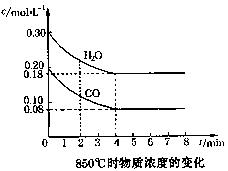Co和H2O浓度变化如下图,则0-4min的平均反应速率v(H2O)= mol·(L·min)-1