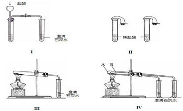 26.(18分)某校化学课外小组为了鉴别碳酸钠和碳酸氢钠两种白色固体,用不同的方法做了以下实验,如图Ⅰ~Ⅳ所示。