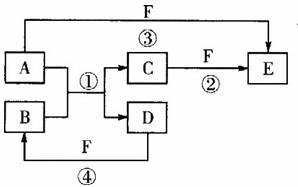 (1)A、D均为短周期元素的单质,A是金属,D是非金属,且原子序数A是D的2倍,原子最外层电子数D是A的2倍,F的浓溶液与A、D反应都有红棕色气体生成,则A的原子结构为 ,B的结构式为 ,反应④的化学方程式为 。