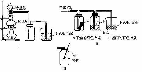 (3)铜丝在氯气中燃烧的现象是 ,将铜丝换成铁丝,做III实验,结果也能点燃,你认为铁线也能点燃的理由是 。(从下列选项中选择)反应的化学方程式为 。