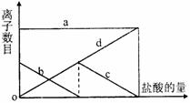 23.向一定量的K2CO3溶液中缓慢滴加稀盐酸,并不断搅拌。随着盐酸的加入,溶液中离子数目也相应地发生变化。如图所示,四条曲线与溶液中的离子的对应关系,完全正确的是 ( )![]()