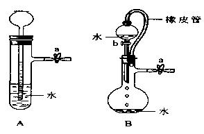 (2)关闭图B装置中的止水夹a后,开启活塞b,水不断往下滴,直至全部流入烧瓶。试判断:B装置是否漏气?(填“漏气”、“不漏气”、或无法确定) ,
