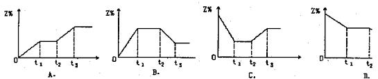 2Y(气)+Z(气) △H=QkJ·mol-1(Q<0)在t1时刻达到平衡,然后在t2时刻开始加热到一定温度后停止加热并保温,到t3时刻又建立平衡,下图能表示这一变化的是 ( )