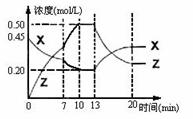 bZ(g);△H<0。下图是容器中X、Z的物质的量浓度随时间变化的曲线。下列说法正确的是