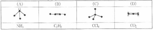 13.下列各图中的大黑点代表原子序数从1~18元素的原子实(原子实是原子除最外层电子 后剩余的部分),小黑点代表未用于形成共价键的最外层电子,短线代表共价键。下列各图表示的结构与化学式一定不相符的是 ( )