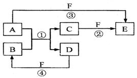 (2)若A是常见的金属单质,D、F是气态单质,反应①在水溶液中进行,则反应②(在水溶液中进行)的离子方程式是: 。