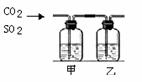 13.CO2气体中含少量SO2,将此混合气体通过下图所示的装置,可得到干燥纯净的CO2,则甲、乙两瓶中所装的试剂是 ( )