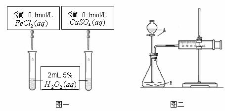 ⑴可通过观察图一的现象: 定性比较得出结论。有同学提出将CuSO4改为CuCl2更为合理,其理由是 ,你认为还可以作何改进? 。