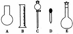 (2)图中所示仪器中,配制0.1mol·L-1盐酸和0.1mol·L-1 NaOH溶液肯定不需要的仪器是 (填序号);配制上述溶液还需要用到的玻璃仪器是(量取液体的仪器除外) (填仪器名称)。