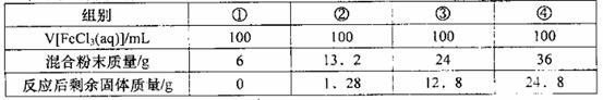 14.今有一包铁粉和铜粉混合粉末,为确定其组成,现提供4mol/L的FeCl3溶液(其他用品略),某合作学习小组同学的实验结果如下(假定反应前后溶液体积不变):