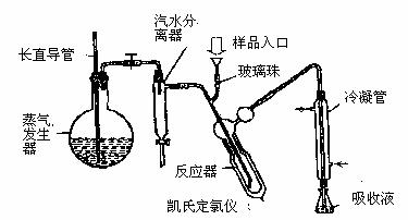 在锥形瓶中加入10mL2%硼酸、2滴混合指示剂,并吸取l0.0mL样品消化液从样品入口注入凯氏定氮仪。用10mL蒸馏水冲洗样品入口,再加10mL50%氢氧化钠溶液,打开水蒸汽发生器与反应器之间的夹子,蒸汽通入反应器使氨气全部被蒸发出来,并通过冷凝管而进入锥形瓶内。加热蒸气发生器5min,取下锥形瓶。