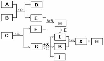 已知:A为淡黄色固体,E、F、G为单质,且E、F、H为无色气体,I为红棕色气体,J与盐酸反应生成不溶于X的白色沉淀.