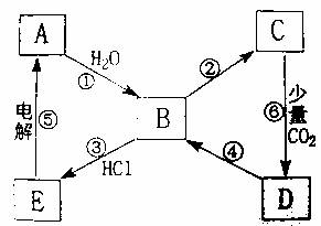 18.(8分)下图表示某典型金属单质A与其化合物之间的转化关系(某些产物和反应条件已略去)。已知:图中所示物质中的组成元素均为短周期元素,化合物C中含有两种金属元素,反应⑤用于工业制取A,反应⑥的产物过滤后得到化合物D的溶液呈碱性。