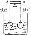 17.如下图所示,杠杆AB两端分别挂有体积相同、质量相等的空心铜球和空心铁球,调节杠杆并使其在水中保持平衡,然后小心地向烧杯中央滴入浓的CuSO4溶液,一段时间后,下列有关杠杆的偏向(实验过程中,不考虑铁丝反应及两球的浮力变化)的判断正确的是