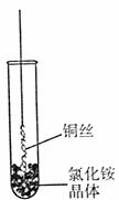 如下图所示,趁热插入到试管里的氯化铵晶体中,在试管中出现白烟。冷却后取出铜丝,可看到铜丝变成光亮的紫红色。回答下列问题: