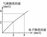 用惰性电极电解一定浓度的食盐水时,通过电子的物质的量与生成气体总物质的量的关系如下图所示(不考虑氯气的溶解)。若电解结束时,通过电子总物质的量为4 mol,电解后恢复至常温,溶液的体积为2 L,则溶液的pH为 ,混合气体中氢气的物质的量为 。