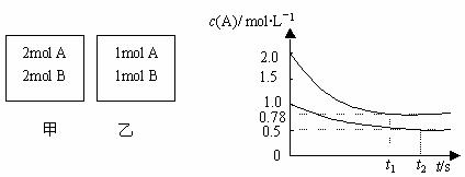 XC(g);△H<0。测得两容器c(A)随时间t的变化如图所示,下列说法正确的是 ( )
