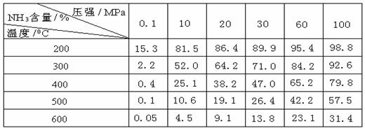 (2)氨的合成:工业合成氨时将N2和H2按体积比为1 :3通入______________中(填工业设备)。在不同条件下达到平衡时,混合物中NH3的含量(体积分数)如下表: