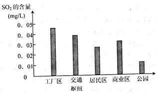 (2)下图是该小组同学根据实验测得的县城不同地区空气中SO2含量: