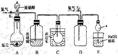 (3)反应结束后,打开D中的活塞K,并通入氧气,银铜合金完全溶解于浓硝酸后生成的NO2气体中含有NO的现象为: ,化学反应方程式为: 。