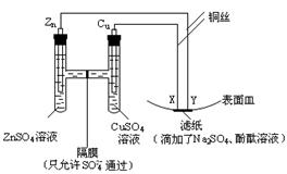 C.铜电极上有红色物质生成 D.Y与滤纸接触处变红