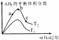 2AB3(g)化学平衡状态的影响,得到如下图所示的变化规律(图中T表示温度,n表示物质的量),根据如图可得出的判断结论正确的是 ( )