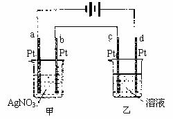 B.甲池是a极上析出金属银,乙池是d极上析出某金属